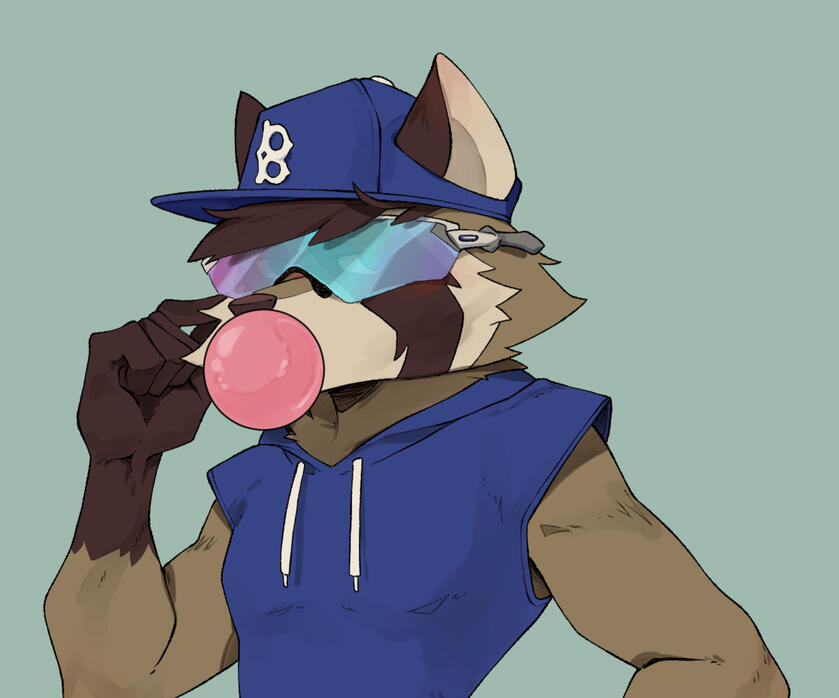 Art by EvviRaccoon, typically in his mid-30s, though age can be shifted depending on the circumstances. Used to be a detective-type character, now some sort of outside-the-law vigilante type character.NSFW-wise, is a switch but leans sub. Major kinks are humiliation, mind control, bondage, impact play, watersports, and licking boots, but there are a whole lot of situations I'd be willing to put this raccoon into.He's also a Brooklyn Dodgers fan.