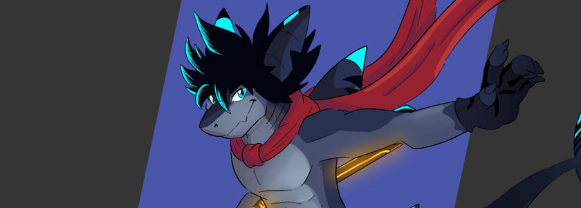 Art by LazyReptileGoo shark, age unknown but presents as somewhere in his late 20s. Became goo as a result of a science experiment gone wrong (typical). No official occupation, backstory isn't super fleshed out yet.NSFW-wise, is a true switch. Major kinks are vore, oviposition, "living suit" things, other inorganic beings. But I'd also put him into a lot of situations as well.